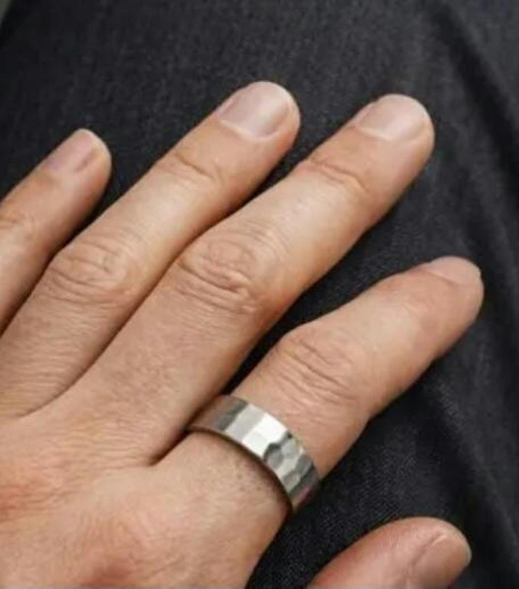 Sa forme simple, son aspect martelé et le titane en font une bague facile à offrir, sans se tromper. Elle convient aussi bien à un usage quotidien qu’à une première bague portée par un homme.