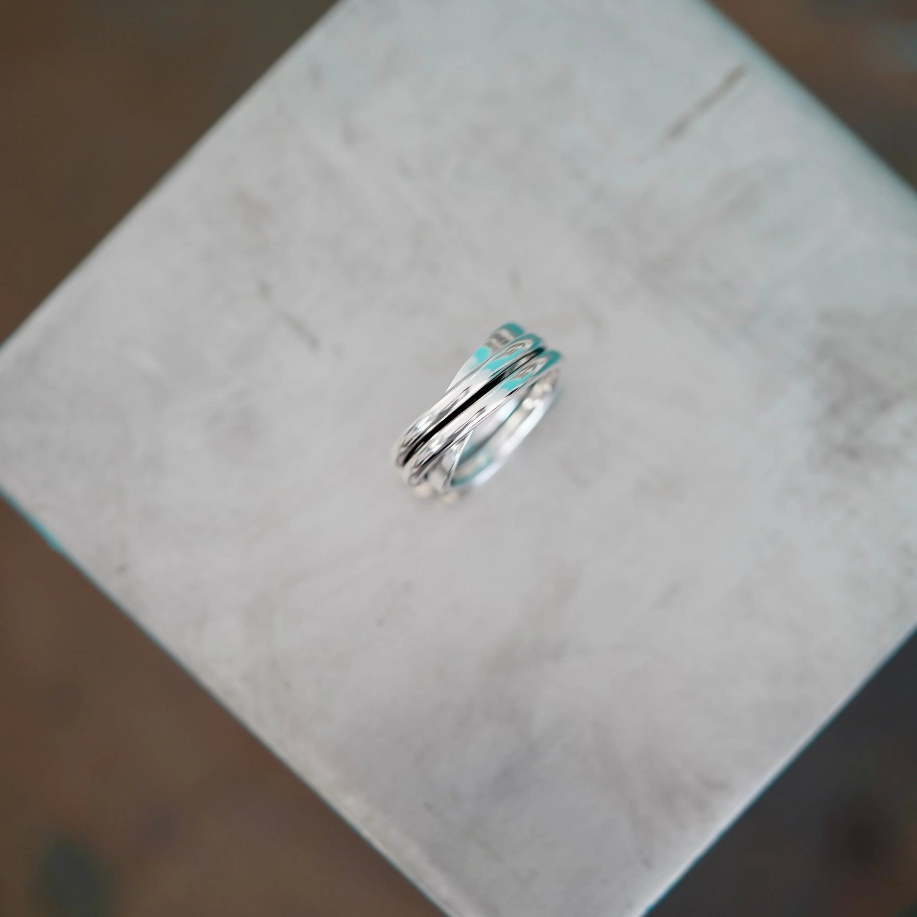 Julie est une variante du modèle classique Juliette de ma collection. La différence est qu’au lieu d'avoir un seul fil qui passe au dessus, ici il y en a deux. Cela donne un bague légèrement plus massive.