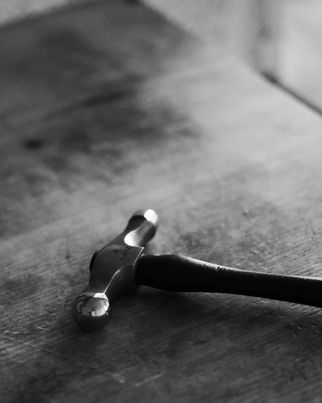 Ensuite je martèle avec un marteau spécial votre bague afin de lui donner son aspect martelé unique