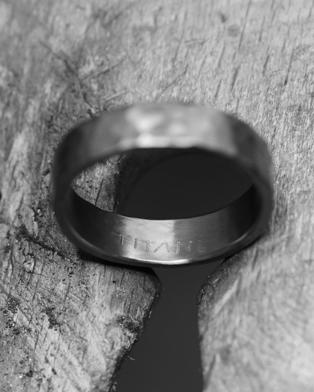 Après l’usinage, chaque bague est forgée à froid, un procédé où le titane est martelé à température ambiante pour lui donner son aspect unique martelé. Cette technique renforce la structure de la bague, mais ajoute également une texture et un style distincts à chaque pièce. Le titane est également hypoallergénique, ce qui le rend idéal pour les personnes à la peau sensible. Avec une bague en titane, vous optez pour un bijou à la fois moderne et intemporel, conçu pour durer toute une vie.