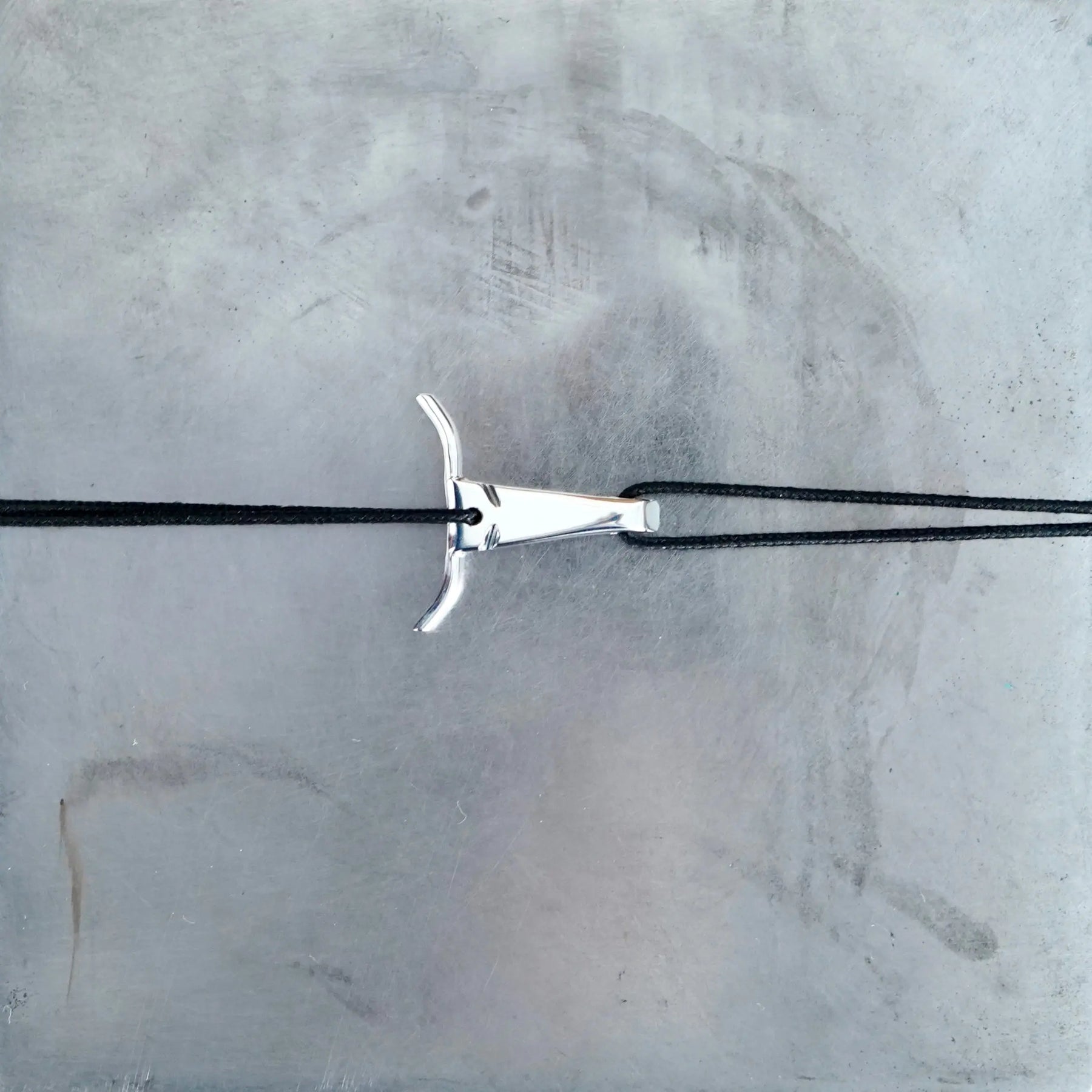 Le bijou est suspendu à un cordon réglable, permettant un ajustement confortable et personnalisé au poignet. Ce bracelet combine élégamment l’art de la forge et la modernité d’un bijou adaptable à tous les styles.