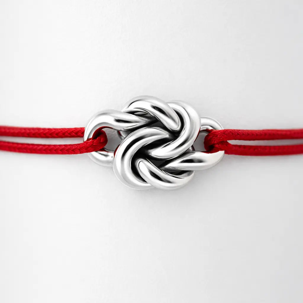 À partir d’un fil d’argent, je forme deux nœuds qui s’enlacent.
