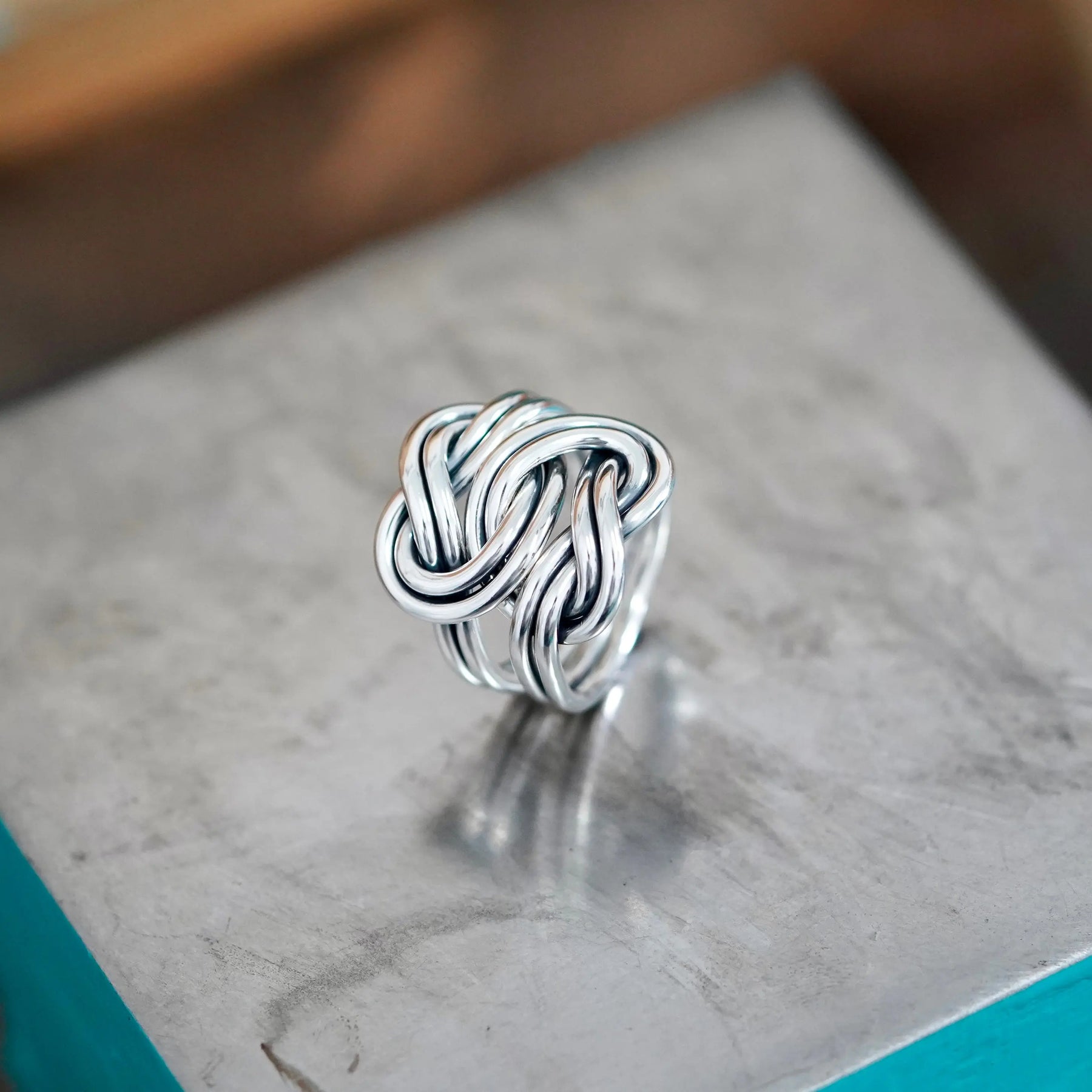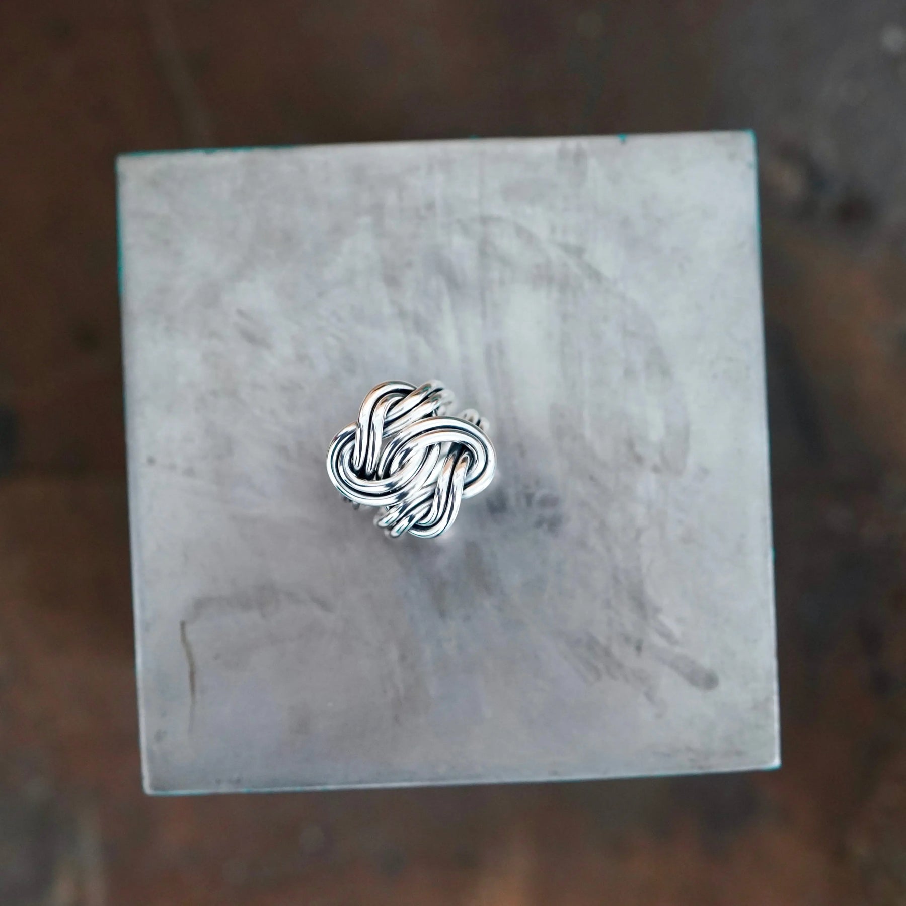 Cette bague a tout en double! Je réalise chaque noeud avec deux fils, et elle est composée de deux bagues identiques reliées entre elles.