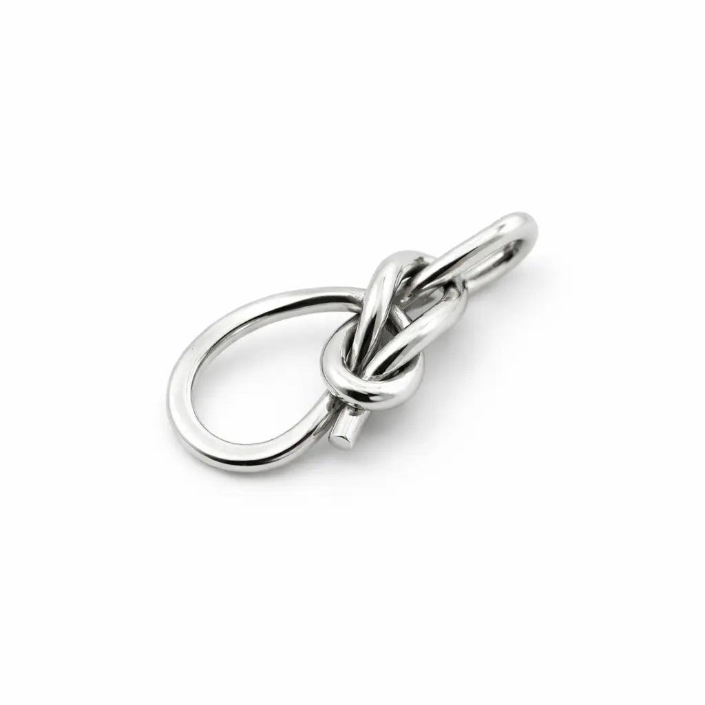 J’ai appris ce nœud sur un voilier lors d’un voyage en Nouvelle-Zélande. À bord, c’est un geste que l’on répète jusqu’à le maîtriser parfaitement. J’ai voulu garder ce mouvement dans le métal, comme si le fil d’argent devenait lui aussi un cordage.