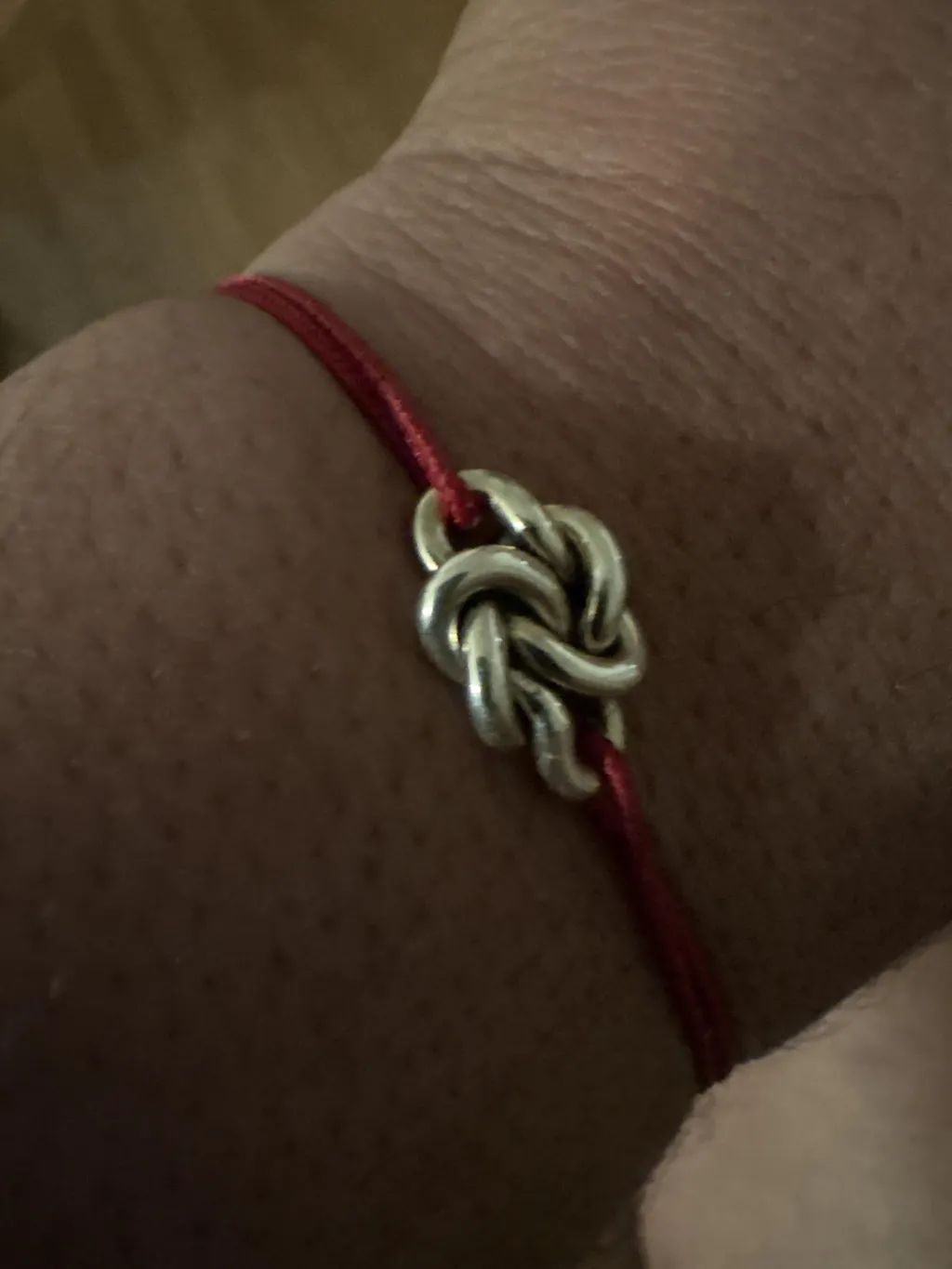 À partir d’un fil d’argent, je forme deux nœuds qui s’enlacent.